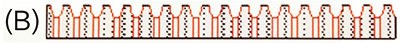B圖:經(jīng)防滑處理的地材表面放大數(shù)倍后,毛細通道寬,毛細孔上層形成坑凹,使摩擦系數(shù)大大增加,遇水產(chǎn)生真空吸盤作用。